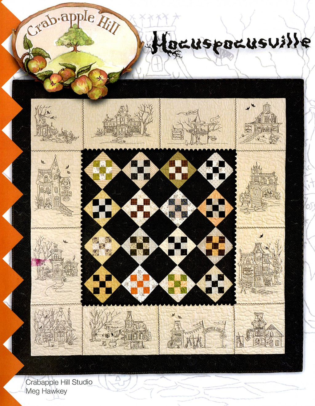 Twelve blackwork embroidered blocks & the quilt instructions complete this charming & comical 68" x 68" quilt